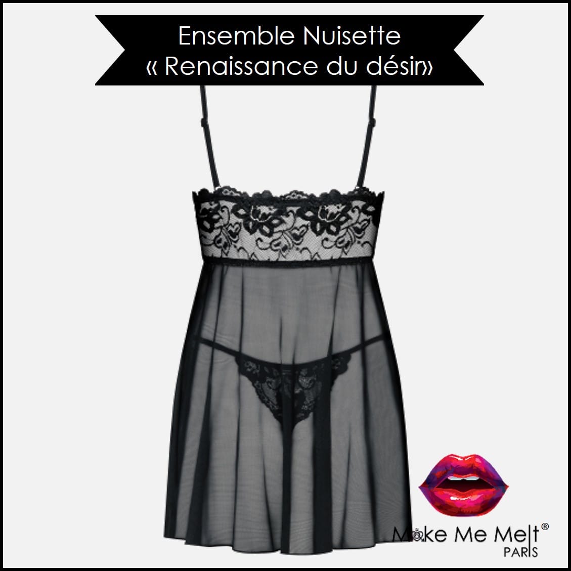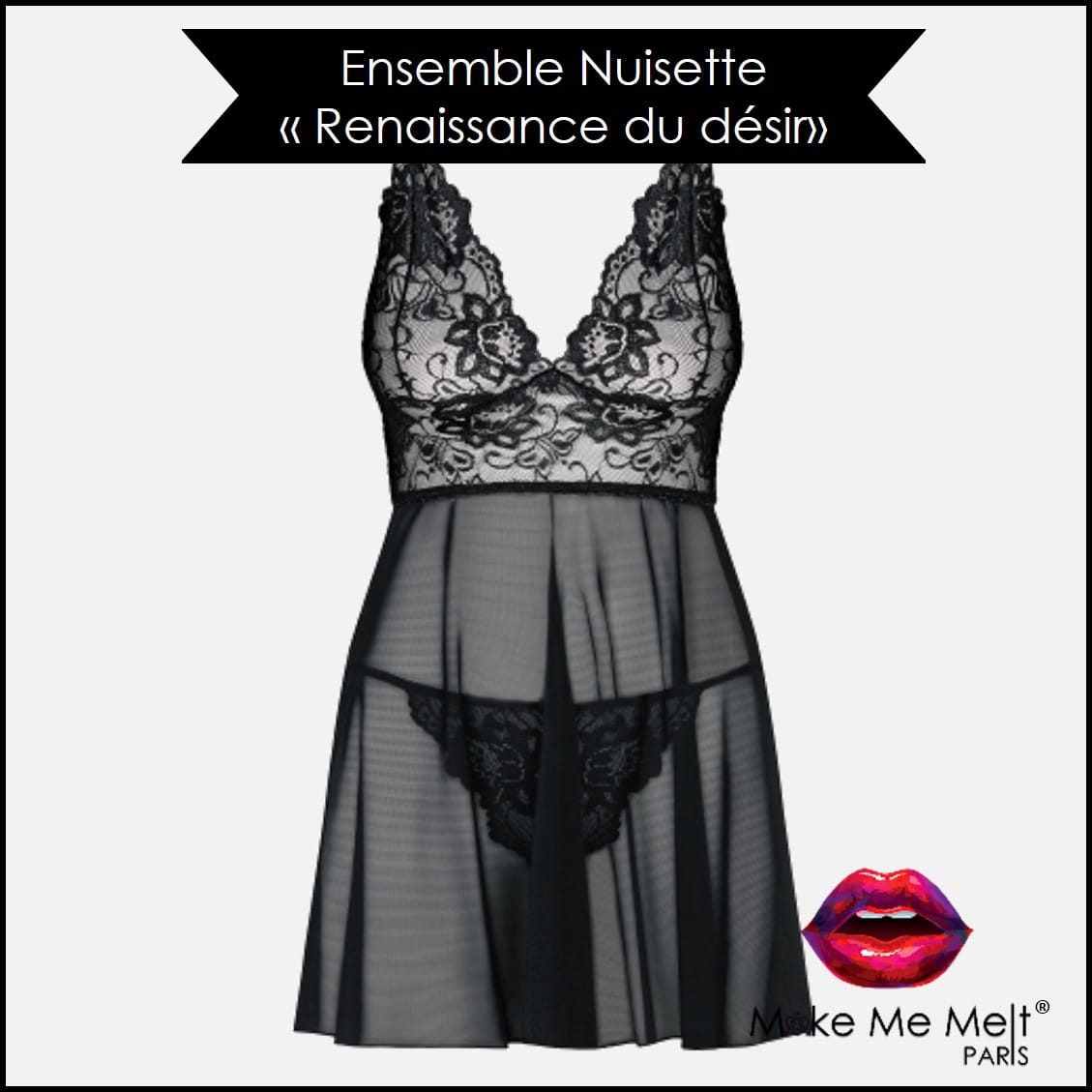 Vous vous sentirez belle et débarrassée de vos complexes dans cet ensemble nuisette et string assorti en dentelle noire. Nul doute que cet ensemble fera naître votre désir d'être femme mais également le désir de votre partenaire pour vous.