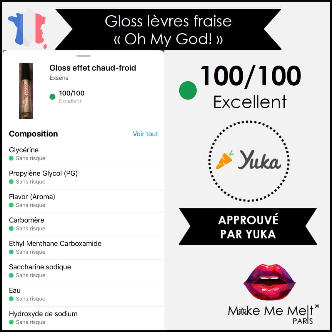 Approuvé par Yuka : note 100/100. Délicieux goût de la fraise, incolore et non gras, sans arrière-goût amer, sans sucre.